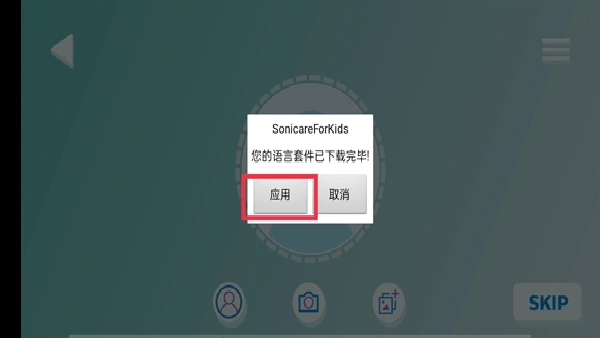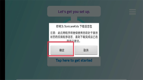 1. 打开软件后,页面会弹出“即将为Sonicare Kids语音包”的提示,点击确定按钮即可。