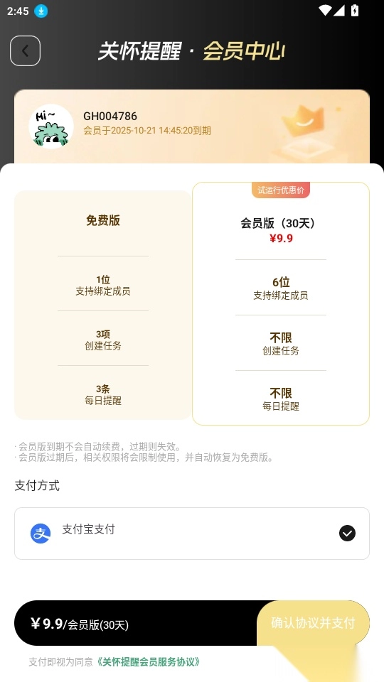 4.你可以自由选择适合自己的支付方式,点击“确认协议并支付”就能完成支付下单,开通会员。