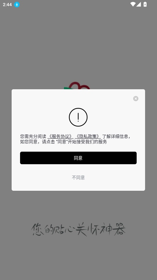 1. 启动软件后,仔细阅读“服务协议与隐私政策”,点击“同意”按钮即可进入。