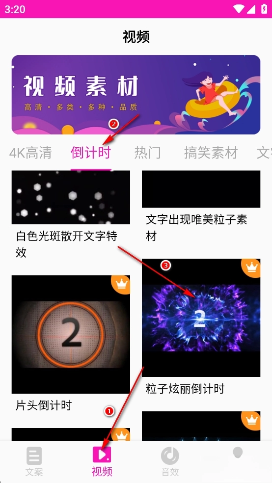 点击【视频】选项,接着挑选分类,从中找到自己需要的视频素材