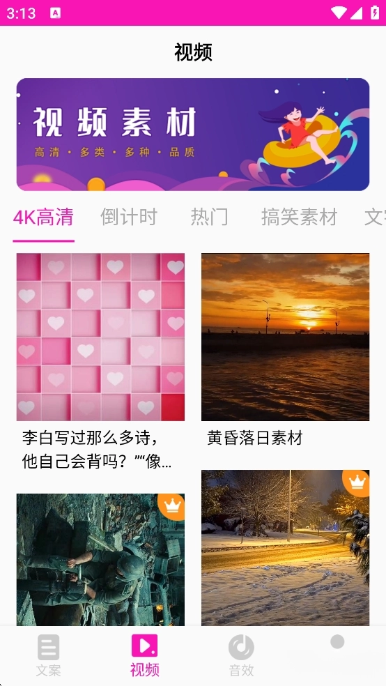 《素材库》这款软件汇聚了海量的图片、视频、文案、特效与音频素材。用户进入软件后,能自由挑选素材类型,图片、视频等素材支持一键获取,文案也可直接复制使用,操作十分便捷。此次分享的是软件的修改版本,已解锁会员权限,所有素材均可免费使用。
