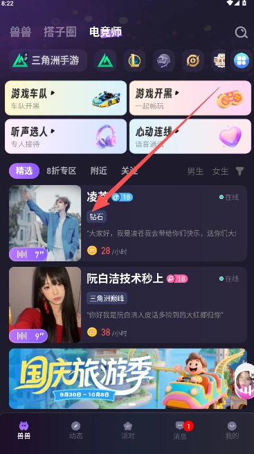 2、游戏开黑陪玩页面,会为你推荐一些优质的高手陪玩。