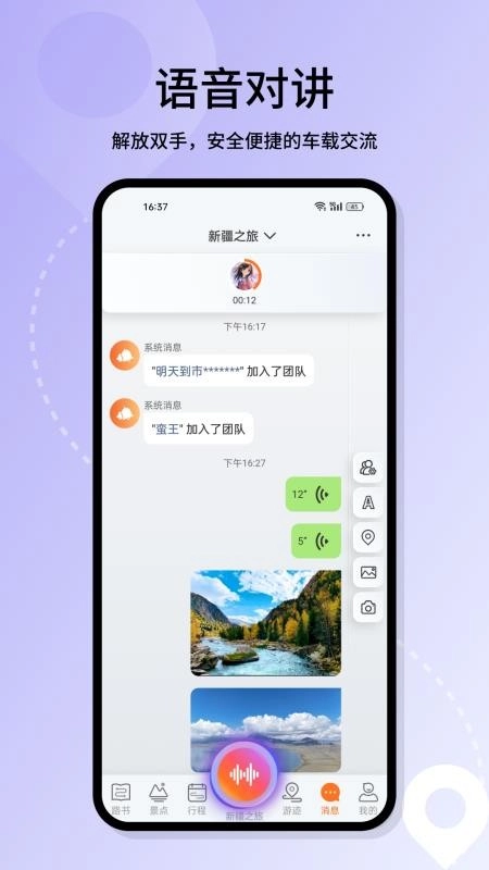 和同行的团队成员开启语音对讲功能,这样在旅游途中就能随时和大家沟通交流了。
