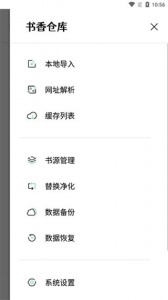 1、打开书香仓库,然后点击右上角的三个点,选择书源管理