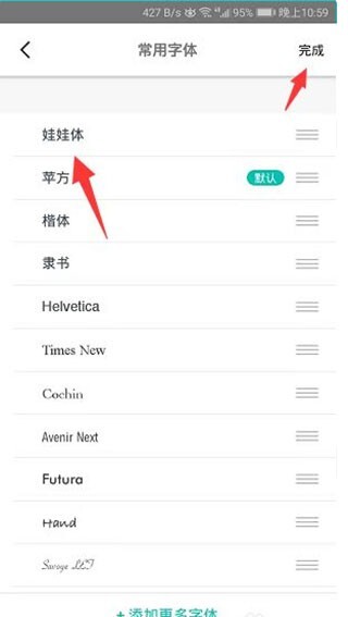 进入编辑页面后,在喜欢的字体后面按住三横杆拖动