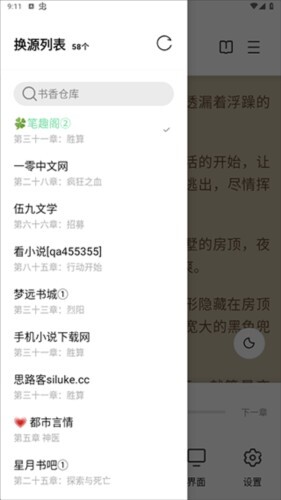 1、进入书香仓库软件首页,随便点击一本小说,可以看到有30个源