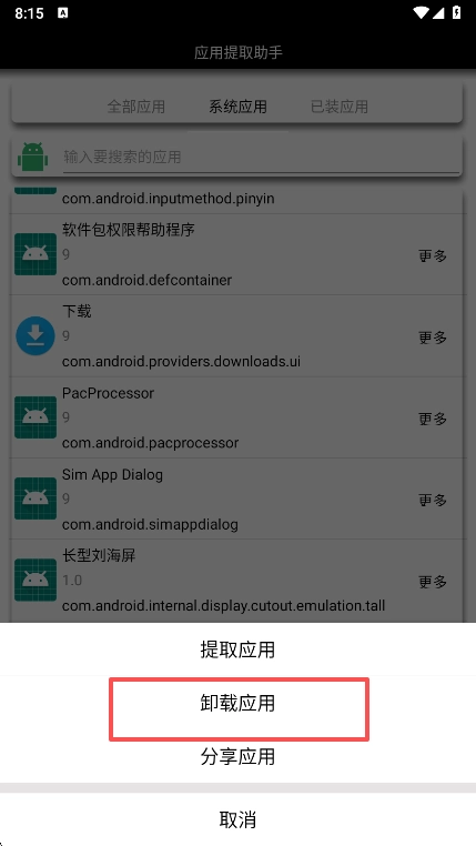 具备智能筛选功能,用户能依据应用名称、版本等信息,快速找到需提取的应用;此外还支持搜索功能,便于用户在大量应用里精准定位目标应用。