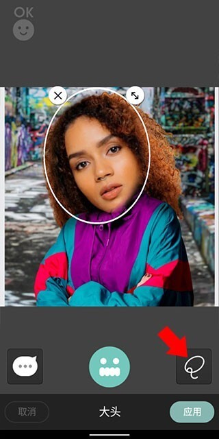 4、接下来相机将自动识别并捕捉照片里的面部区域,要是没能成功捕捉,直接点击右下角的磁力套索工具手动套取就可以了。