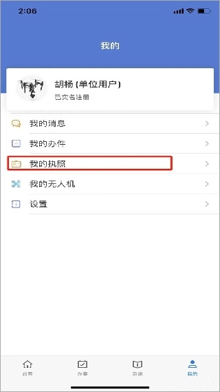 7. 点击“我的执照”。
