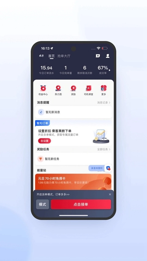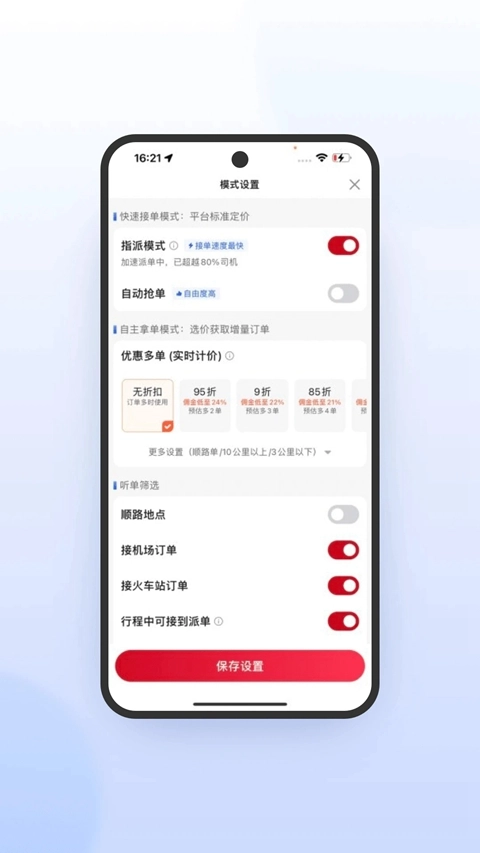 省时省力:自定义接单模式(指派/自动),随时上线接单,收入更稳定。