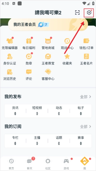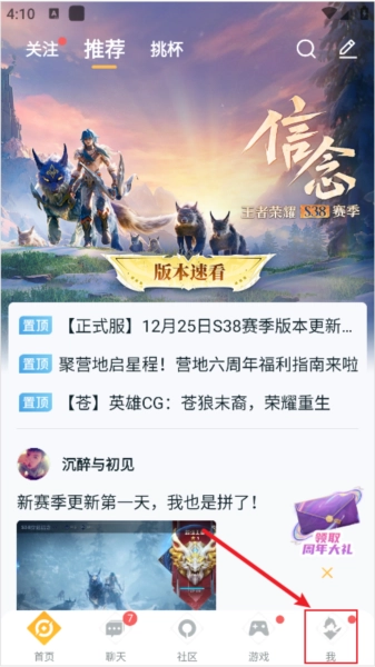 1、打开王者营地主界面后,点击屏幕底部导航栏里的“我”选项。