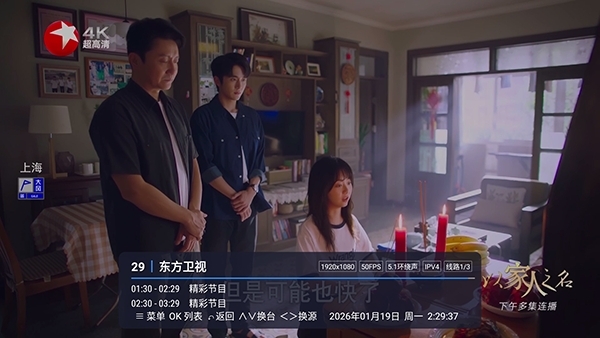 支持预约、时移、暂停、回看、收藏、轮播。
