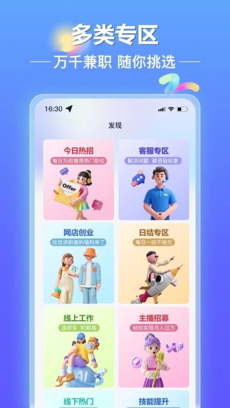 闪薪达副业平台为用户提供了丰富多样的兼职岗位,涵盖多个行业领域,每位用户都能找到适合自己的工作机会,并且可以直接与雇主对接,助力你轻松增加收入,享受灵活自由的工作模式;平台还会提供详细的个人兼职工作记录,让你随时掌握所有工作状态,方便及时结算薪资,保障你的劳动收益权益;赶紧来体验一下吧!