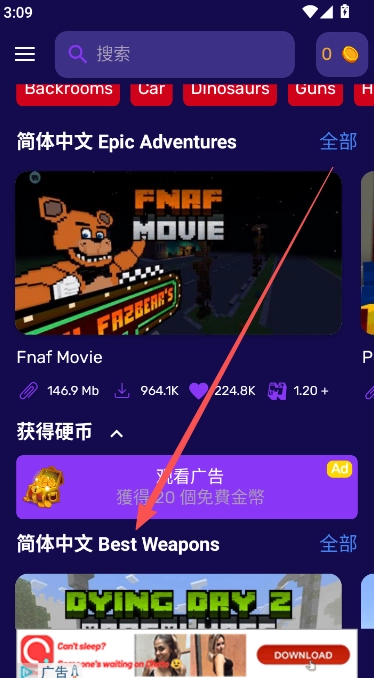 1、打开我的世界大师盒子首页,向下滑动页面,找到以简体中文字样开头的MOD模组。