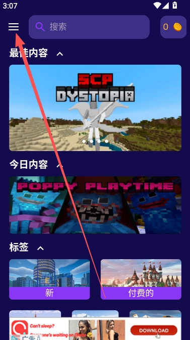 1、我的世界大师盒子专业版的解锁条件清晰明确,点击左上方的横线位置即可打开查看。