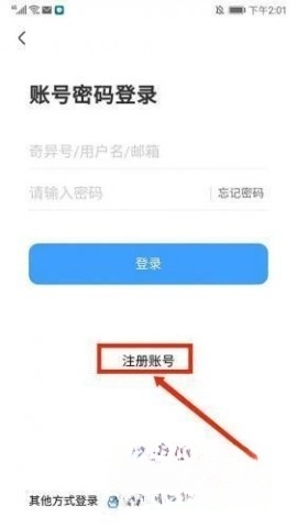 2. 这时你会被引导到【账号密码登录】页面,下方有个醒目的【注册账号】选项,赶紧点击它吧!