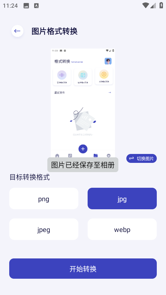 5、转换完成后,系统提示“已保存在相册中”。