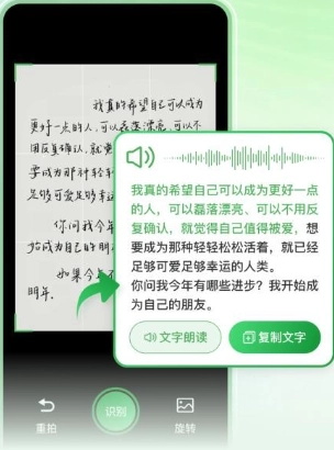 - 拍照识别文字:还拥有手机拍照自动识别文字的功能。只需拍照,即可自动识别照片中的文字,并将其一键播报出来,方便进行文字信息的获取和分享。