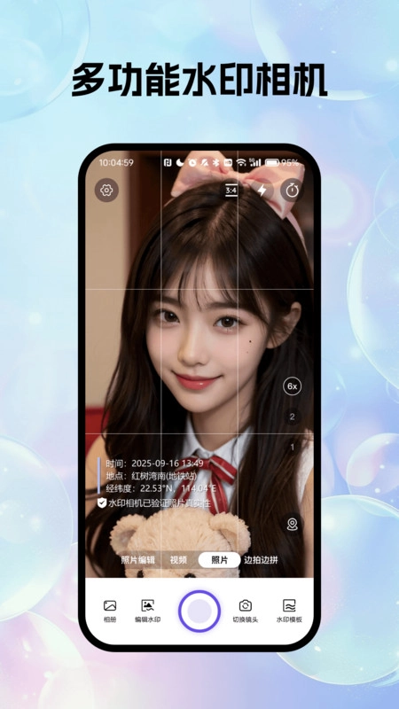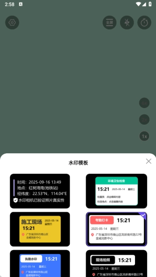 极速多功能水印相机是一款融合拍摄、水印添加与图片编辑功能的实用应用,具备专业拍摄能力,支持照片和视频拍摄,能实时添加包含时间、地点、经纬度等信息的水印以验证照片真实性,还提供多款适配不同场景的水印模板,便于用户快速选用。