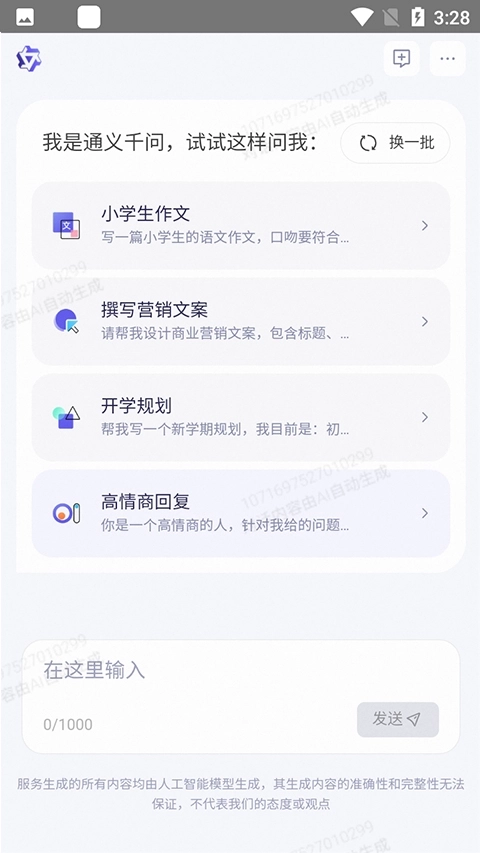 2、进入通义千问页面后,你只需提供关键词,它就能生成你想要的文章。