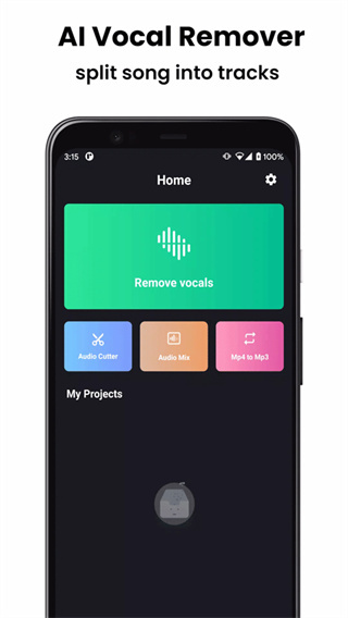 1. 打开手机版VocalRemover的首页,点击下图中用框标注的位置。