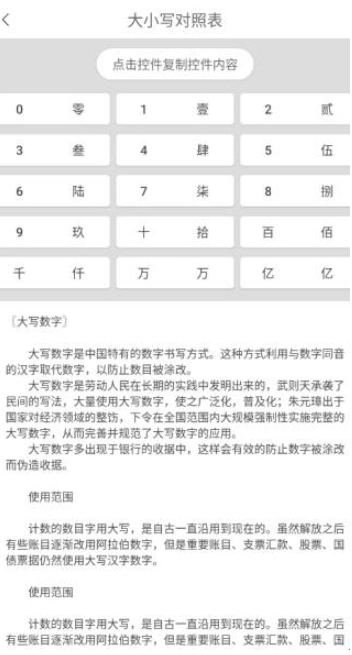 4、软件提供大写对照表,可以直接点击复制到粘贴板