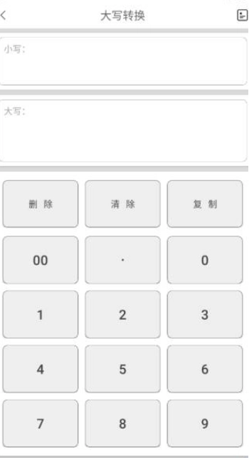 3、大写转换界面十分简洁,并且能够直接借助计算器计算来获取大写数据