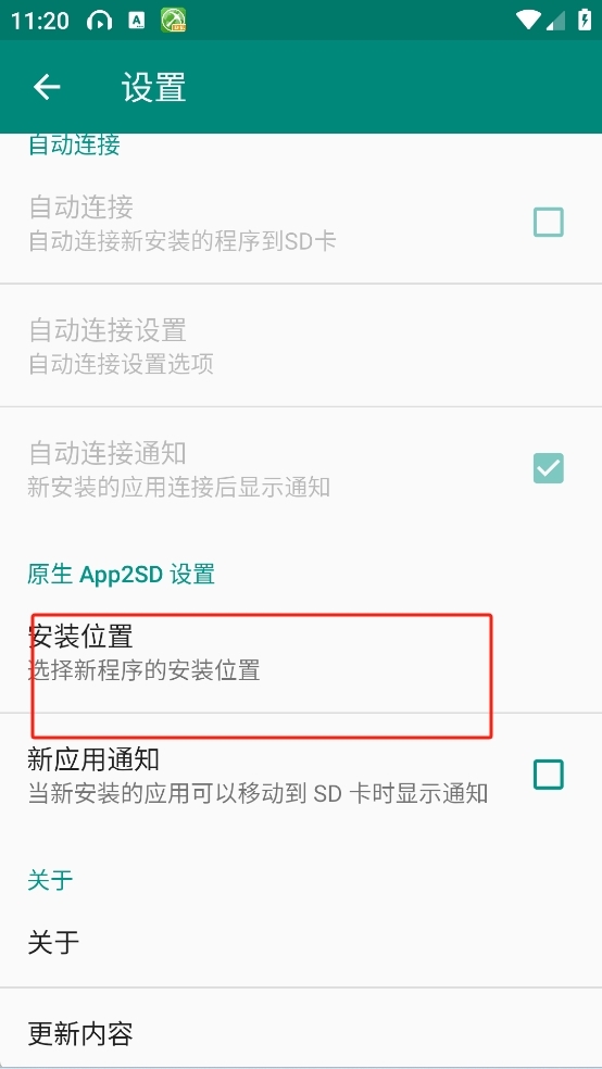 9、设置默认安装的应用程序的位置;汽车,内部或外部