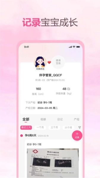 3、智能提醒:具备贴心的提醒功能,能协助孕妇按时记录关键的产检日志,确保不会漏掉任何重要环节。