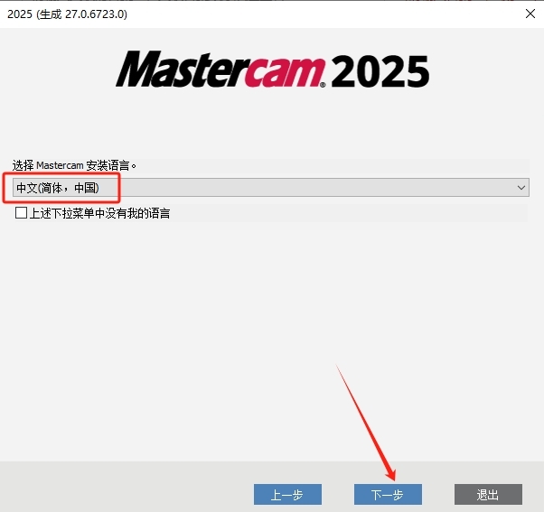 3、选择【中文...】,点击【下一步】。