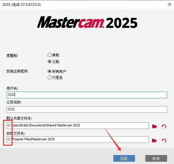 5、修改目标文件夹路径地址,点击【完成】。