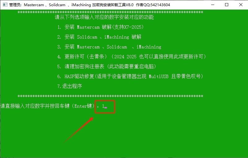 15、输入数字【1】后在键盘上按【Enter】键。