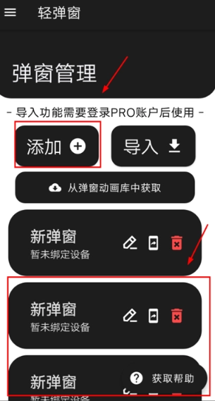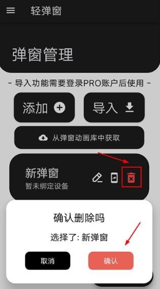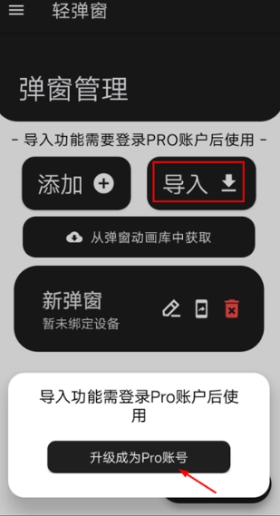 点击页面顶部的“导入”按钮会跳转到系统文件管理器,从中选择一个有效的.zip格式弹窗数据文件,就能将其导入到列表中。需要注意的是,导入的弹窗不包含“绑定设备”相关内容以及文本按钮“打开应用”的信息,建议修改后再使用。(该文件可从其他用户分享的弹窗文件中获取,也可从动画库导入)