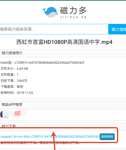 4、这个时候就会获取相应的磁力链接;