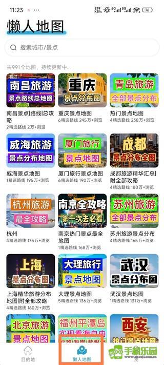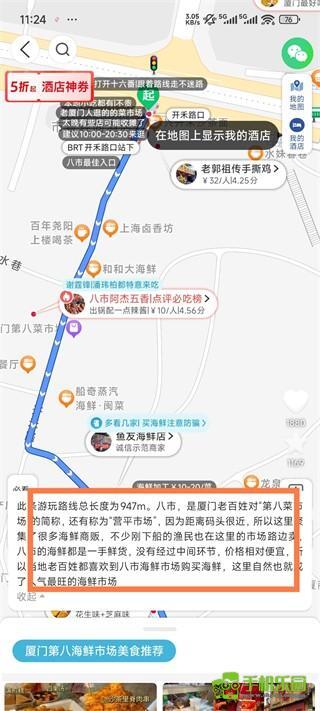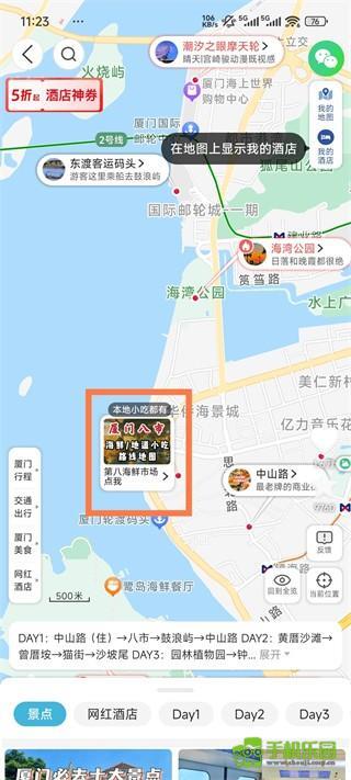 2、搜索目的地地图,选择XX景点/美食分布