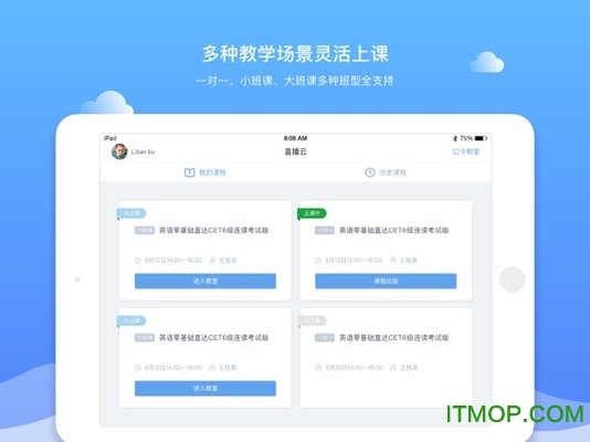 2.支持手机、iPad、电脑、网页等多种上课,在家就能与老师互动;