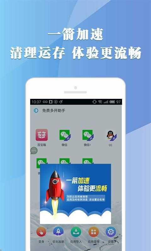 全球首款免费多开工具,可免费支持社交软件、娱乐、游戏、购物、视频、音乐等几乎所有应用的双开、多开与分身功能,轻松满足用户的多账户使用需求。