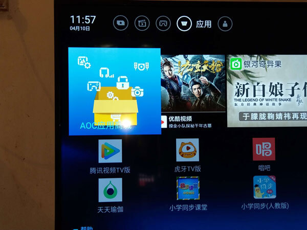 2、打开AOC电视,首页找到“应用”点击