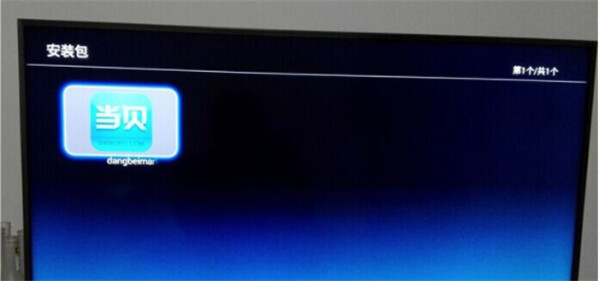 2、第二步,把U盘插到电视机的USB插口里,读取U盘的数据,找到当贝市场的安装包,开始安装,如果不能直接读取U盘的数据,就在电视上打开‘电视文件管理器’,再读取U盘里的数据进行安装。