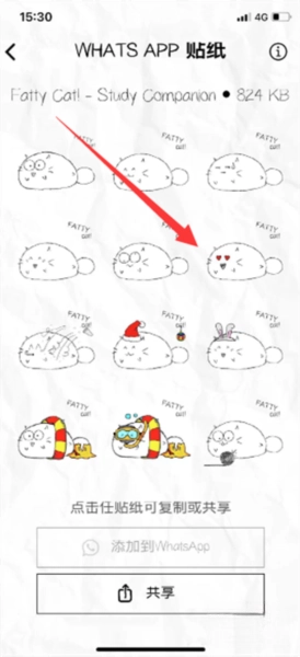 在贴纸页面中,浏览并找到你喜欢的贴纸,点击打开。