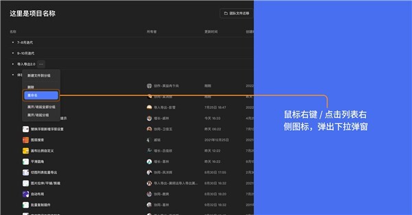 选择按照“所有者”模式显示,文件会在项目内按照文件的所有者进行分组显示,分组默认按照所有者名称首字母进行排序,分组的排序可通过拖拽进行调整。