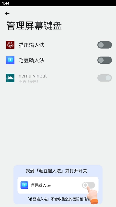 毛豆输入法具备多语言输入能力,还能提供个性化皮肤设置,同时支持文本语音朗读与翻译等实用功能,可在后台运行,并且允许添加状态栏使用!