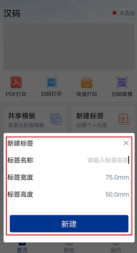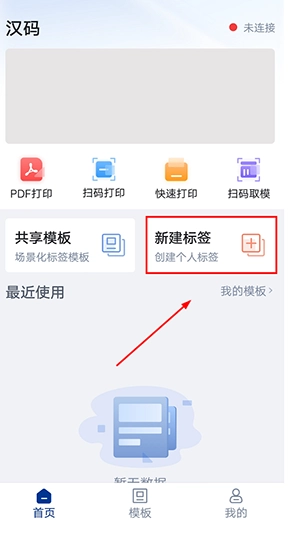 1、打开汉码标签打印机,点击【新建标签】。