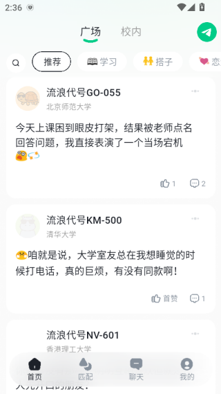 1、打造纯净的校园匿名/实名交流空间,快速获取最新校园动态,找到志同道合的同校伙伴。