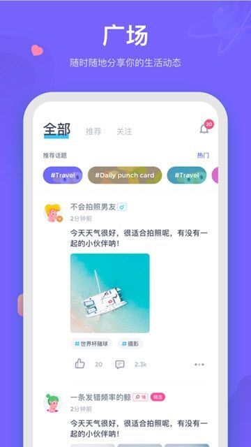 《呼啦》是一款主打社交功能的手机聊天交友软件,致力于让用户充分体验主流社交方式。它专为现实中不敢主动示爱的成年人打造,为这类人群提供了一个相对自由且适配的平台,帮助他们在这里寻觅到理想的另一半。感兴趣的朋友们,快来下载体验吧!