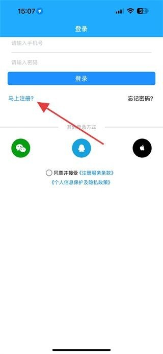 1、打开飞毛腿跑腿,在登录页面点击马上注册?选项,进入注册页面。