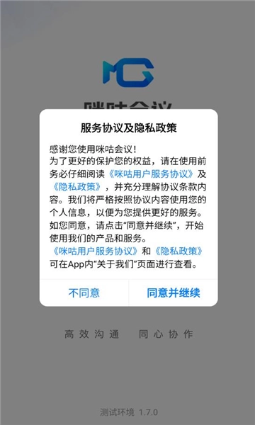1、打开咪咕会议点击同意然后继续