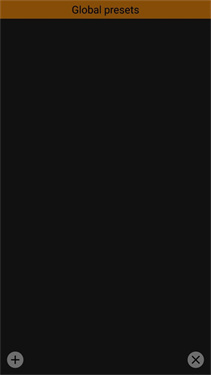 全局预设功能的使用步骤是:先在主界面(即上一张图所示的界面)设置好各项参数,接着进入全局预设界面点击加号按钮完成保存;后续使用时,只需直接点击之前保存好的预设选项,就能调用预设参数进行拍摄。