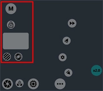 5、接着我们来到了二号红框区域,这里主要用于调节感光度、快门速度和曝光补偿。原始界面如左图所示,点击M键后界面会切换为右图的样子。