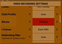 12、向下滑动后,我们进入编码器设置界面。这里需要调整的是码率和码率模式,对应的就是图中俄文及俄文下方的选项。码率是造成画面分辨率高却不够清晰的关键因素之一——手机厂商通常会为了节省内存,对视频码率做限制,但借助这款软件,我们可以自主调节码率。个人建议:1080p 60fps的视频,码率设为75左右即可;4K视频的话,码率200左右就足够。 码率模式建议选择“可变”,原因在于并非所有画面信息都有保留价值:很多重复画面在存储时会被自动填充,以此减少存储空间占用。选择可变码率模式,能更好地提升存储利用效率,减少无效画面的冗余存储。